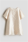 Платье А-линии из прочного, переливающегося жаккардового переплетения. Круглый вырез, короткие рукава реглан и отверстие для ключа с пуговицей сзади. На подкладке.