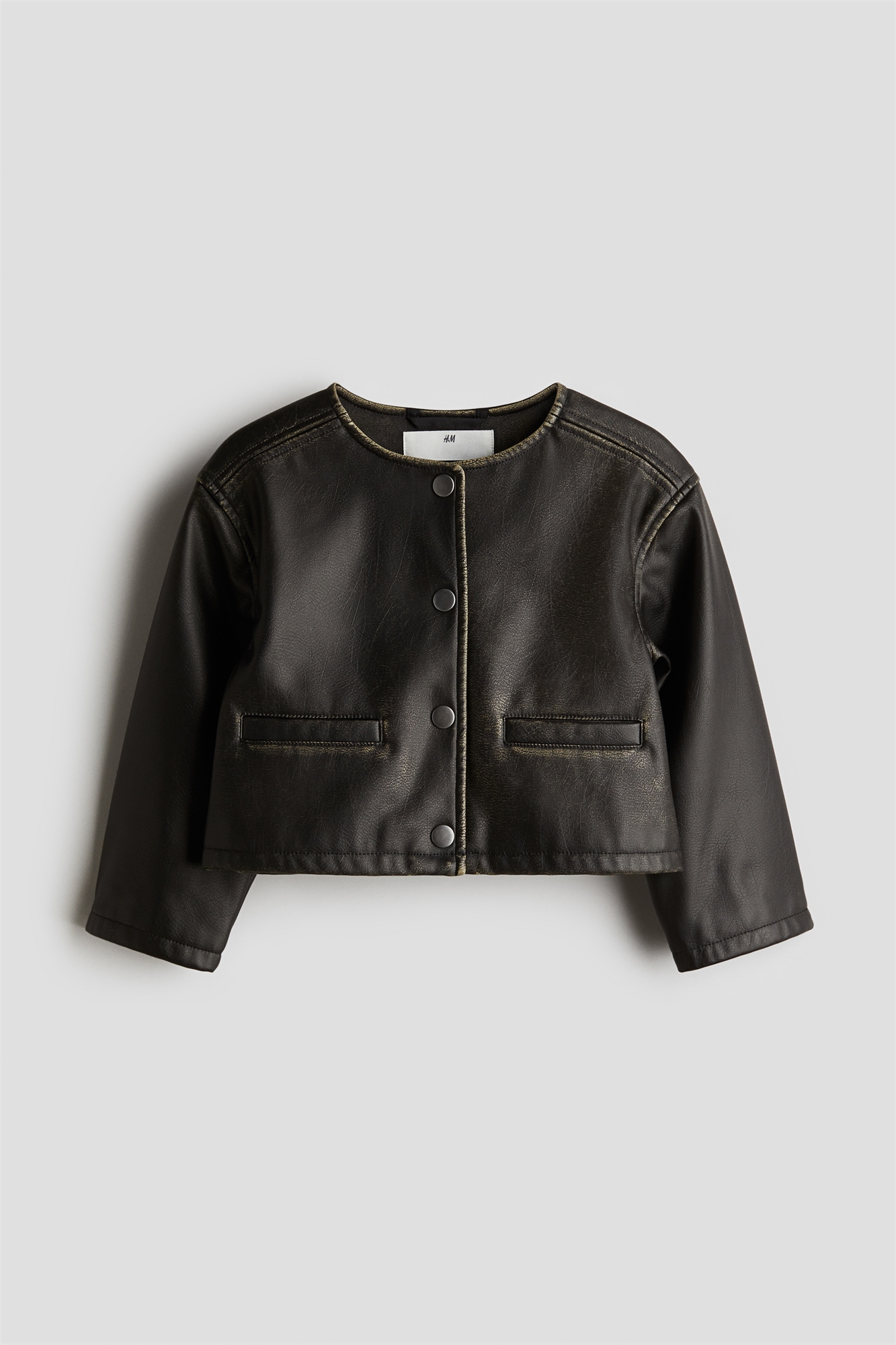 Приталенный жакет из ткани с покрытием, круглый вырез, застежки на кнопки спереди и прорезные передние карманы. На подкладке.