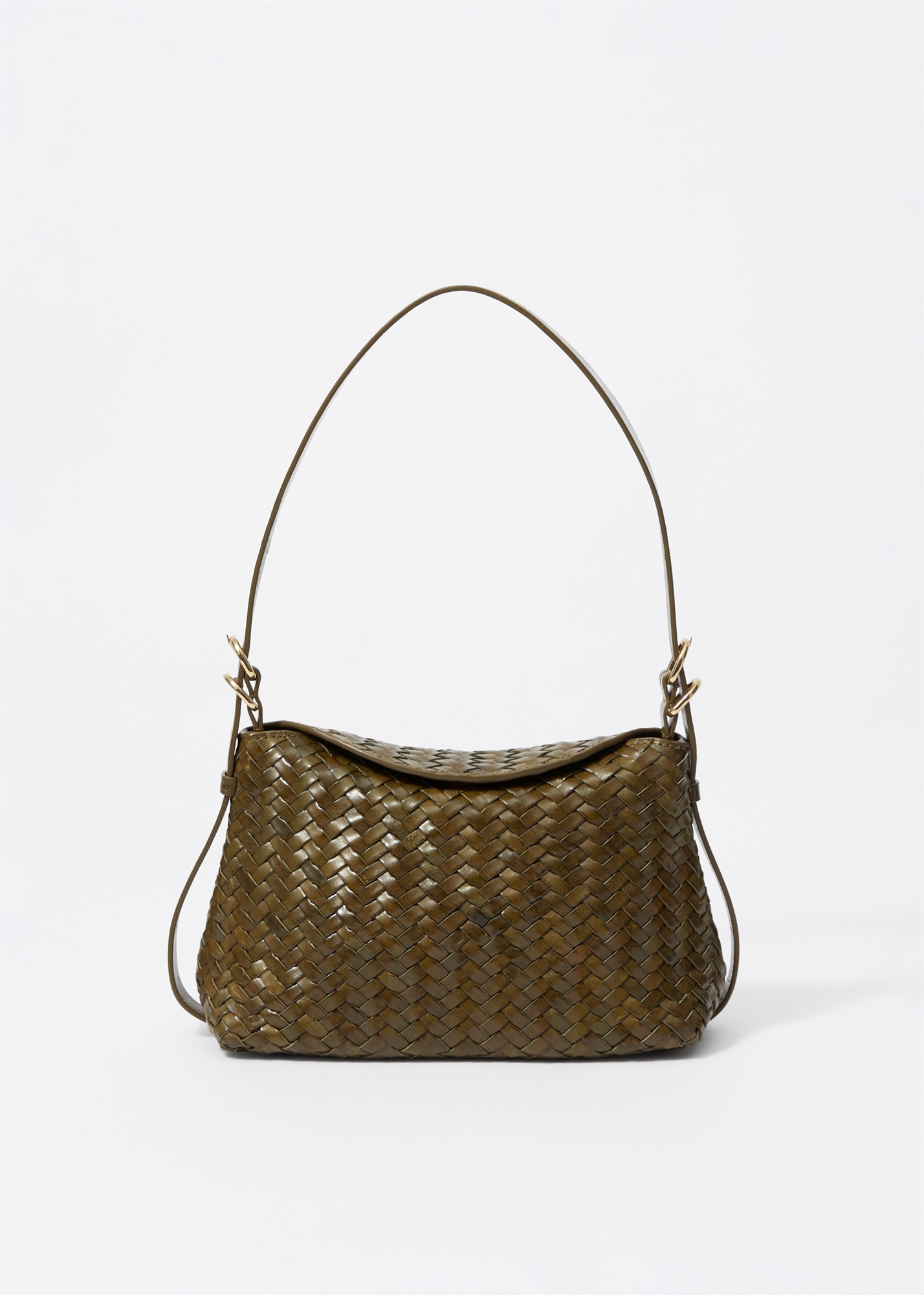 Эта сумка имеет мягкую форму, тщательно собранную из полосок эластичной кожи. Сумка оснащена регулируемым плечевым ремнем с пряжкой, скрытой магнитной застежкой, внутренним карманом и хлопковой подкладкой. Идеальный размер, чтобы вместить несколько повседневных вещей, таких как телефон, кошелек и книга. Ширина: 24 см / 9,4” Глубина: 10 см / 3,9” Высота: 17 см / 6,7” Длина ручки: 36 см / 14,2”