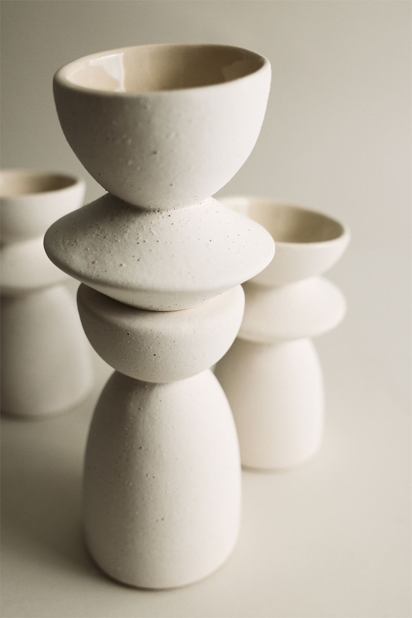 Подсвечник из керамогранита со слегка фактурной отделкой, напоминающей сложенные камни на пляже. Диаметр 7 см. Высота 21 см.