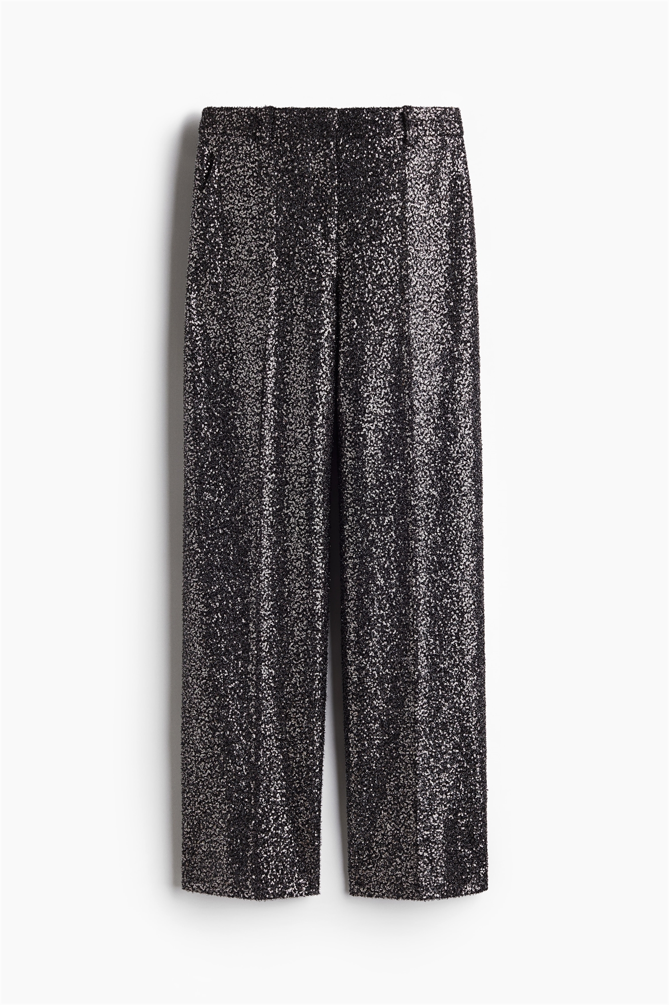 Приталенные украшенные брюки со скрытой эластичной резинкой на талии и ширинкой на молнии с застежкой на крючок и планку. Диагональные боковые карманы, втачные карманы сзади и прямые ноги со складками спереди и сзади.