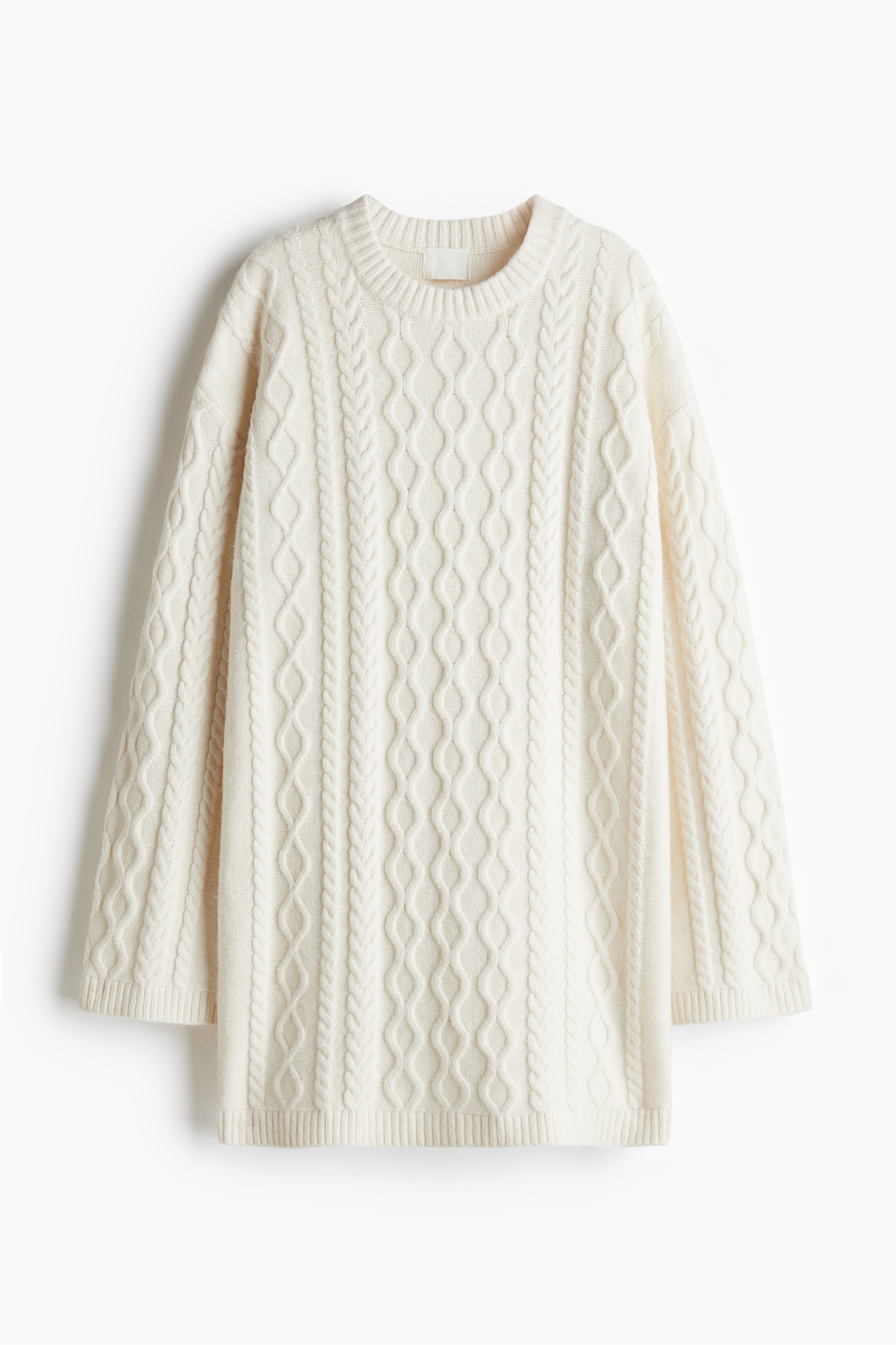 Короткое платье свободного кроя из мягкого трикотажа в рубчик с круглым вырезом, спущенными плечами и длинными рукавами. Окантовка вокруг выреза, на манжетах и подоле.