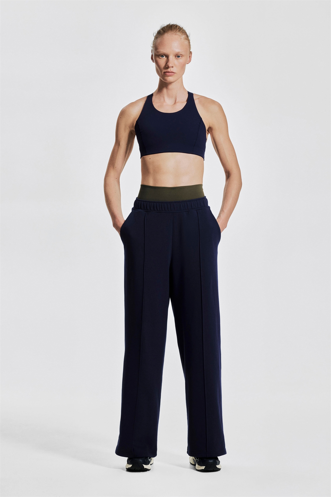 Спортивные брюки из функциональной ткани DryMove™, которая отводит влагу от кожи, обеспечивая комфортную сухость во время движения. Высокая талия с утяжкой и потайным шнурком, боковые карманы и широкие штанины с застроченными складками.