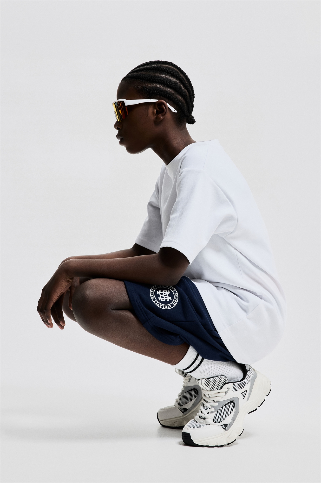 Спортивные шорты из хлопкового свитшота средней плотности с эластичной отделкой и потайным шнурком на талии. Боковые карманы.
