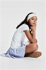 Теннисная юбка кругового кроя из функциональной ткани с добавлением DryMove™, которая отводит влагу от кожи, обеспечивая комфортную сухость во время движения. Юбка надевается поверх трусов из джерси с карманом для мяча на одной штанине. Высокая талия с широким поясом.