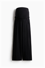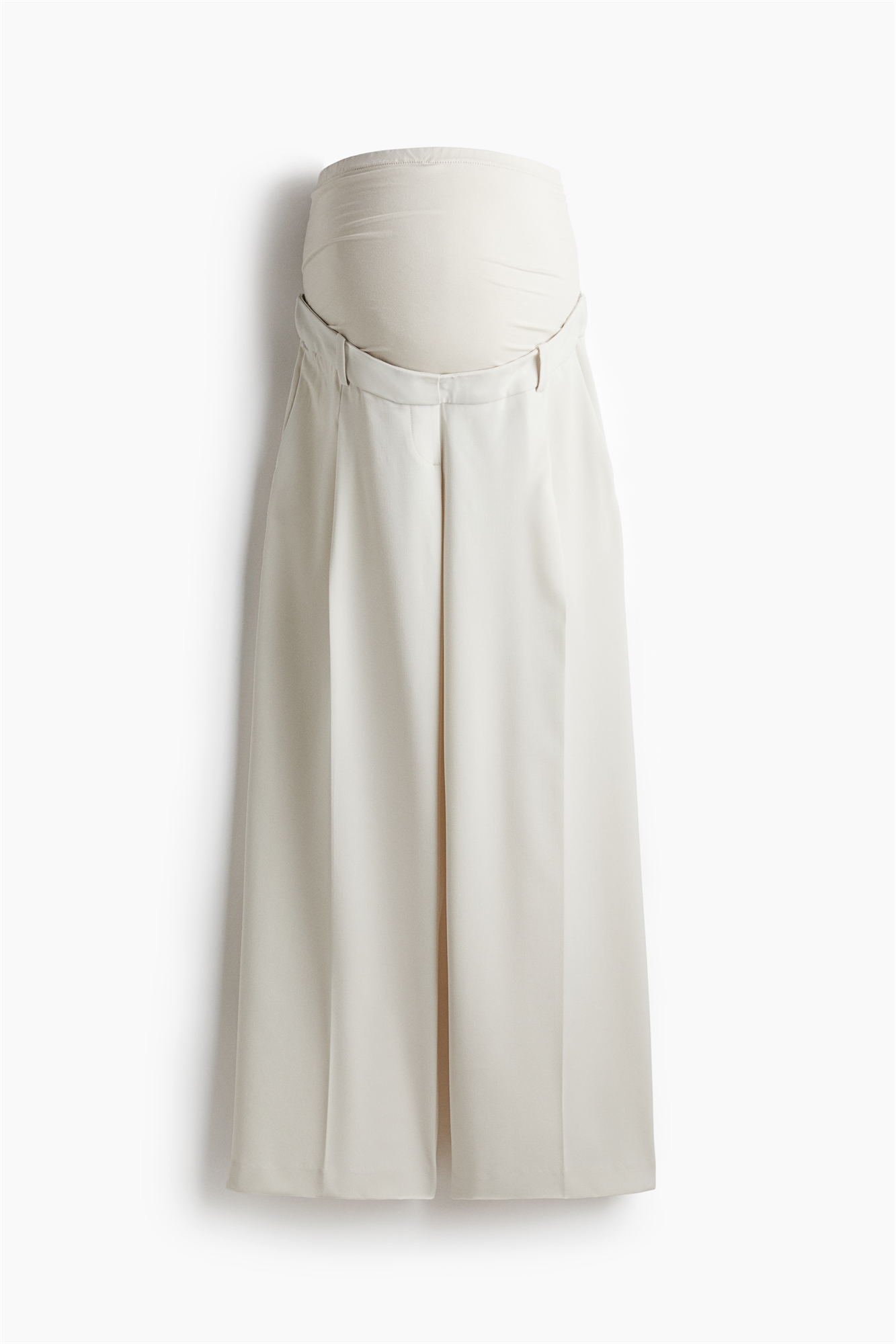 Брюки свободного покроя из тканого материала с диагональными боковыми карманами и втачными задними карманами. Потайная резинка сзади и широкая панель из джерси на талии для лучшей посадки на животе. Широкие ноги со складками спереди и складками спереди и сзади.
