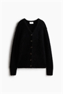Кардиган из мягкого, пушистого трикотажа с содержанием мохера и шерсти. V-образный вырез, пуговицы спереди, спущенные плечи и длинные рукава. С открытыми швами, манжетами и подолом в рубчик.