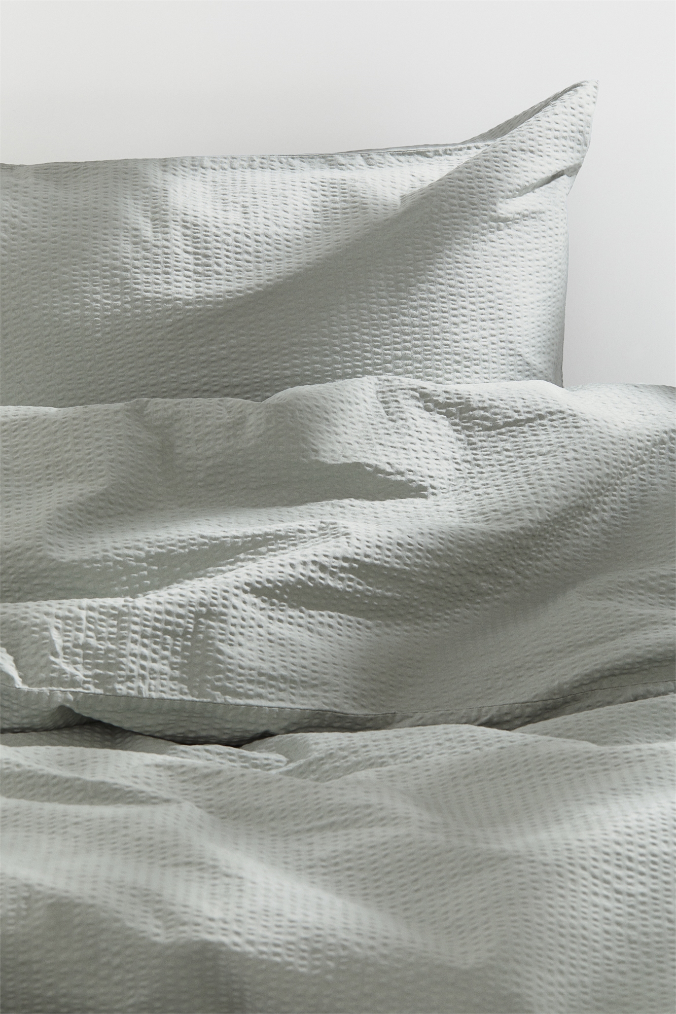 Односпальный комплект постельного белья из мягкого, воздушного сарсакера, изготовленного из хлопковой смеси с количеством нитей 200. Пододеяльник застегивается снизу потайными кнопками. Одна наволочка с отверстием в виде конверта. Жатый ситец или сирсакер - это отличный выбор материала постельного белья для теплых месяцев года, так как в нем ощущается прохлада и воздушность.