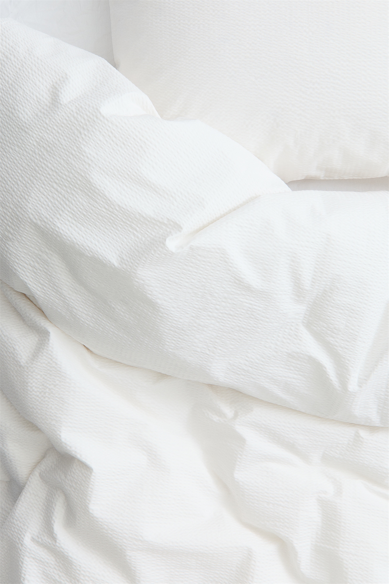 Односпальный комплект постельного белья из мягкого, воздушного сарсакера, изготовленного из хлопковой смеси с количеством нитей 200. Пододеяльник застегивается снизу потайными кнопками. Одна наволочка с отверстием в виде конверта. Жатый ситец или сирсакер - это отличный выбор материала постельного белья для теплых месяцев года, так как в нем ощущается прохлада и воздушность.