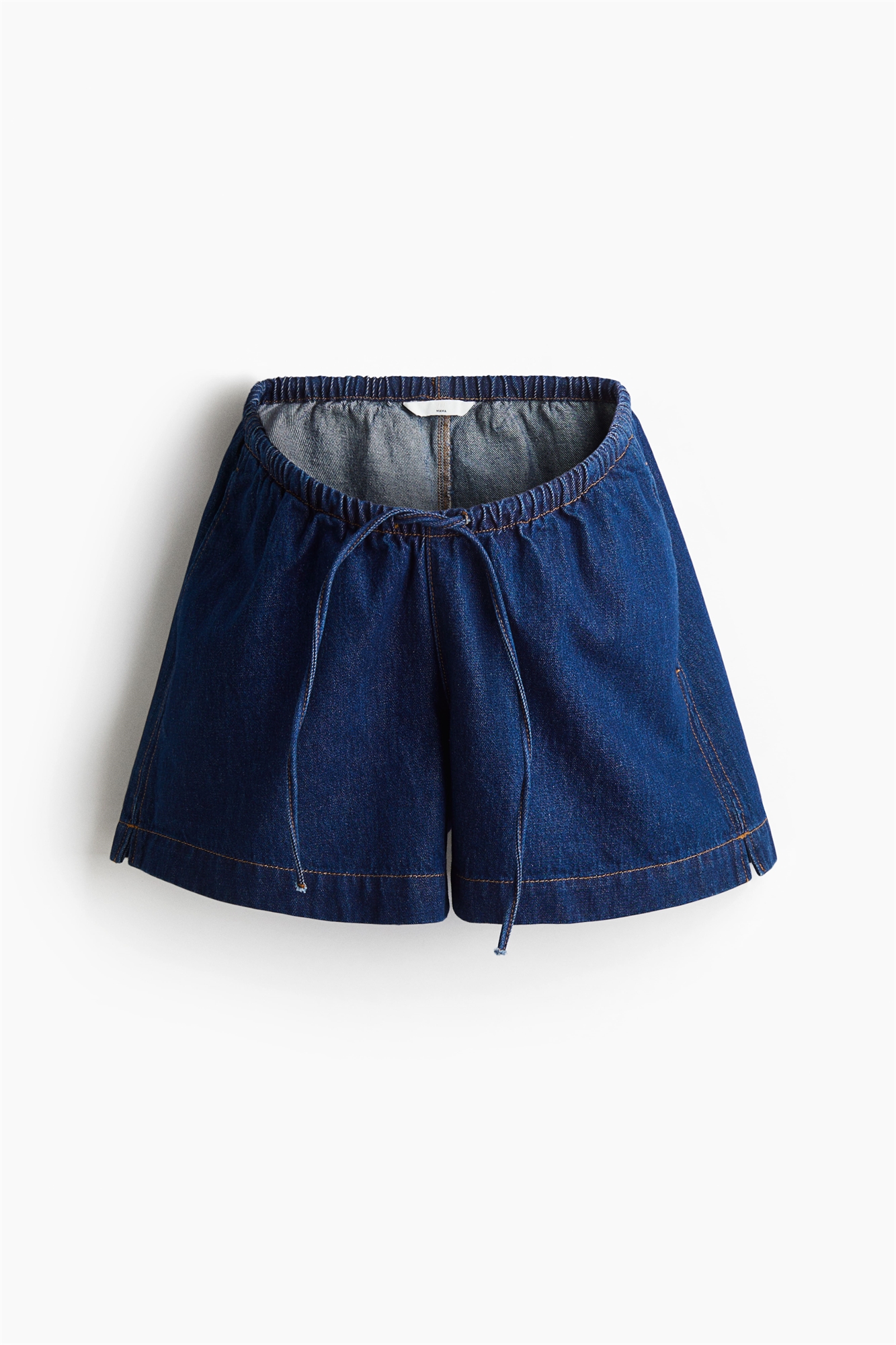 Шорты свободного покроя из мягкого хлопкового денима с незаметными боковыми карманами и заниженной талией с эластичной отделкой и узким шнурком.