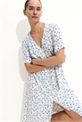 Платье длиной до щиколоток из вискозы с V-образным вырезом и пуговицами спереди. Эластичная резинка на талии сзади и узкий съемный пояс под бюстом. Короткие рукава и швы "принцесса" спереди и сзади для придания силуэту привлекательности. Платье можно носить как во время, так и после беременности. Без подкладки.