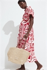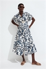 Платье длиной до щиколоток из тканого материала с открытым воротником и потайными пуговицами спереди. Съемный пояс под бюстом и короткие рукава с отворачивающимися манжетами. Без подкладки.