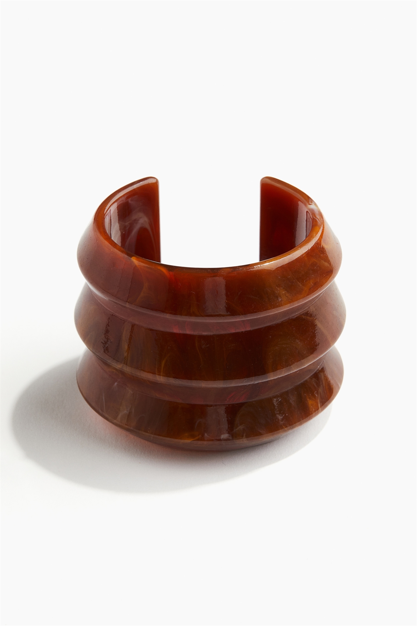 Широкий рифленый браслет-манжета из мраморного пластика. Ширина 7 см.