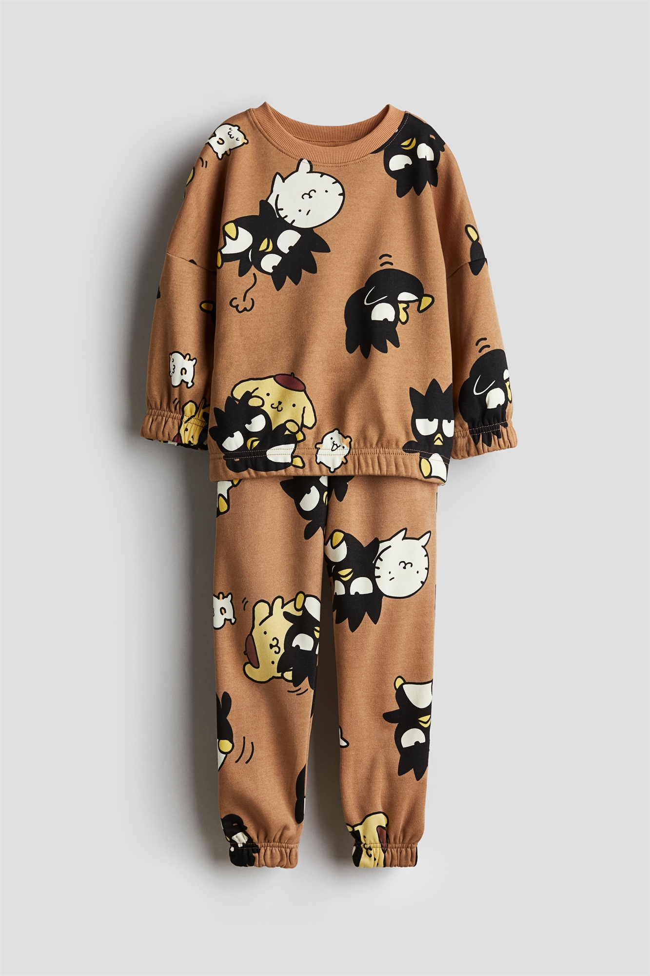 H&M x Hello Kitty and Friends. Комплект из топа и джоггеров из принтованной толстовки с мягким начесом внутри. Топ с круглым вырезом в рубчик, спущенными плечами и эластичными манжетами и подолом. Джоггеры с регулируемой эластичной талией, боковыми карманами и эластичной отделкой по подолу.