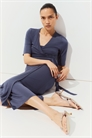 Платье для кормящих длиной до колен из мягкого вискозного трикотажа с V-образным вырезом, рукавами длиной до локтя и завязками спереди под бюстом. Практичный внутренний топ для облегчения доступа к груди.
