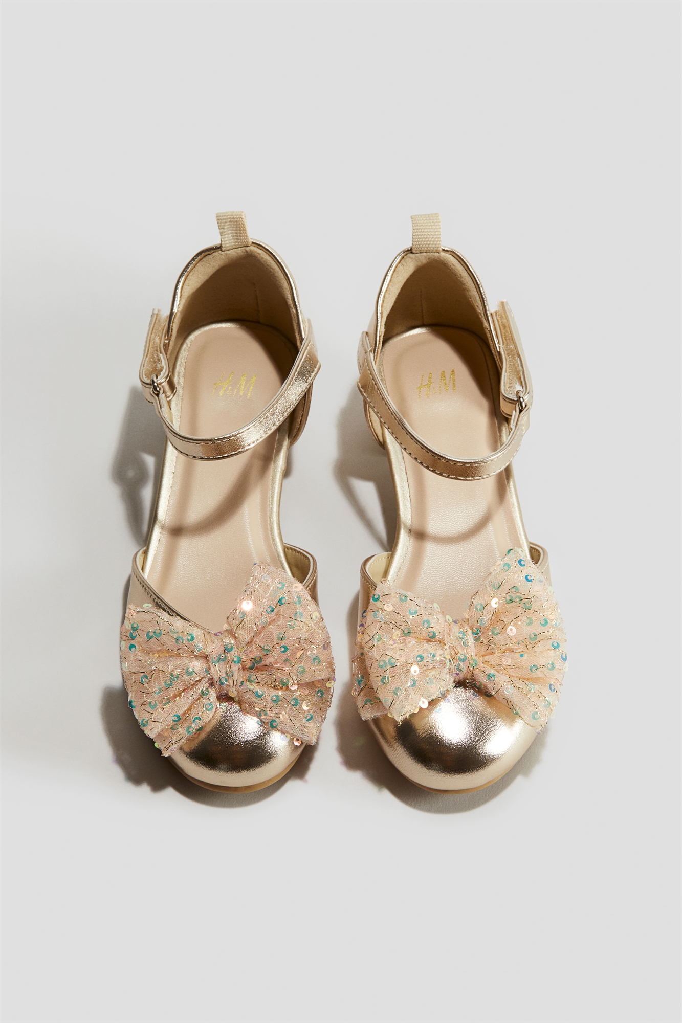 Туфли из лакированной ткани с закругленными мысками и декоративным бантом с блестками. Регулируемый ремешок на щиколотке с застежкой на крючок и петлю и небольшой каблук. Стелька из технической пены Cellfit™ для дополнительного комфорта. Каблук 2,5 см.