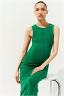 Приталенное платье длиной до щиколоток из ребристого вискозного джерси с круглым вырезом и прямым кроем.
