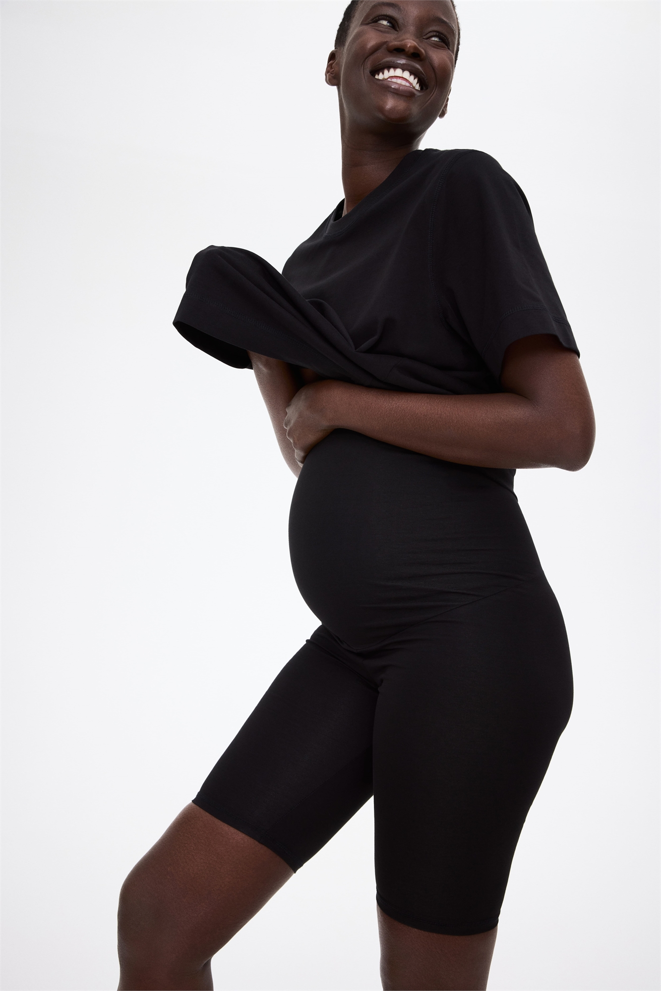 Удобный комплект из футболки и пары велосипедных шорт из мягкого хлопкового джерси. Шорты длиной до колена с широкой панелью из джерси на талии для лучшей посадки на животике.