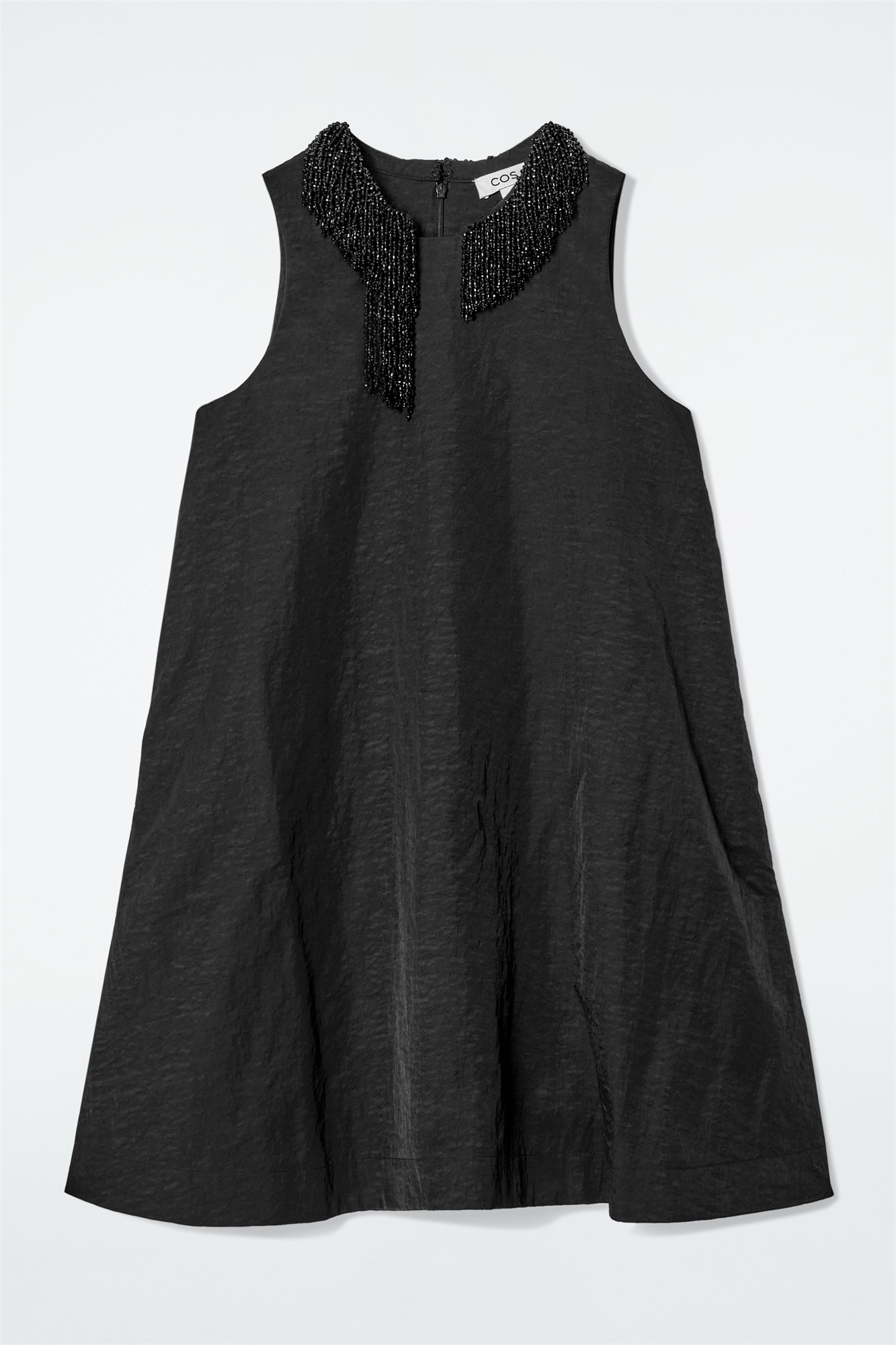 Это платье А-линии придает вечерним нарядам изысканную утонченность. Созданное из легкого нейлона, оно имеет силуэт с вырезом "ракер" и украшено асимметричной бахромой из бисера. Наденьте его с туфлями на каблуках. Свободный крой Застежка-молния ECOVERO™ является торговой маркой Lenzing AG. Вискозное волокно получают из сертифицированных возобновляемых источников древесины с помощью процесса, снижающего воздействие на окружающую среду Оболочка: 100% полиамид (нейлон). Подкладка: 55% ECOVERO™ Viscose, 45% Viscose. Без учета отделки / Сухая чистка Длина спереди для размера EU 36 составляет 90,8 см / Модель носит размер EU 36