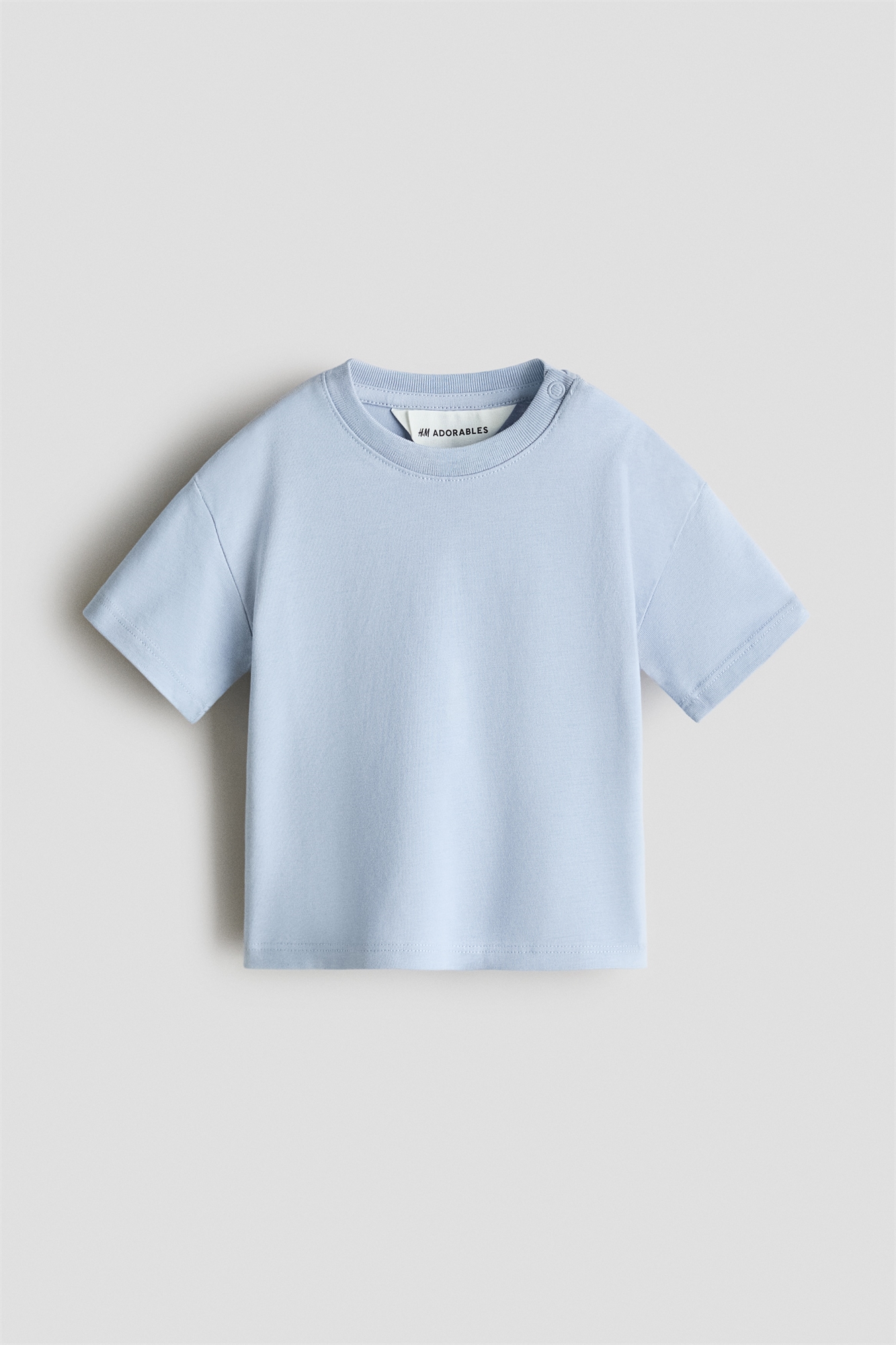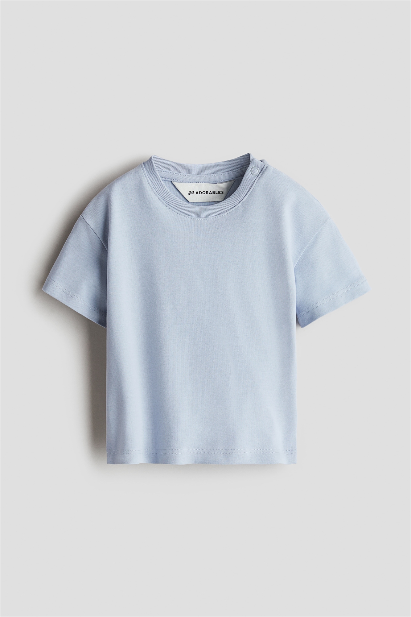 H&M Adorables. Свободная футболка из супермягкого джерси из высококачественного хлопка пима. Круглый вырез с ребристой отделкой и застежкой на кнопки с одной стороны (кроме размеров 2-4Y), спущенные плечи и короткие рукава. Наш хлопковый трикотаж имеет высокий показатель GSM, что означает более плотное и прочное качество без ущерба для комфорта. Коллекция H&M Adorables - это подборка качественных вещей с высоким уровнем комфорта, которые не подвластны времени.