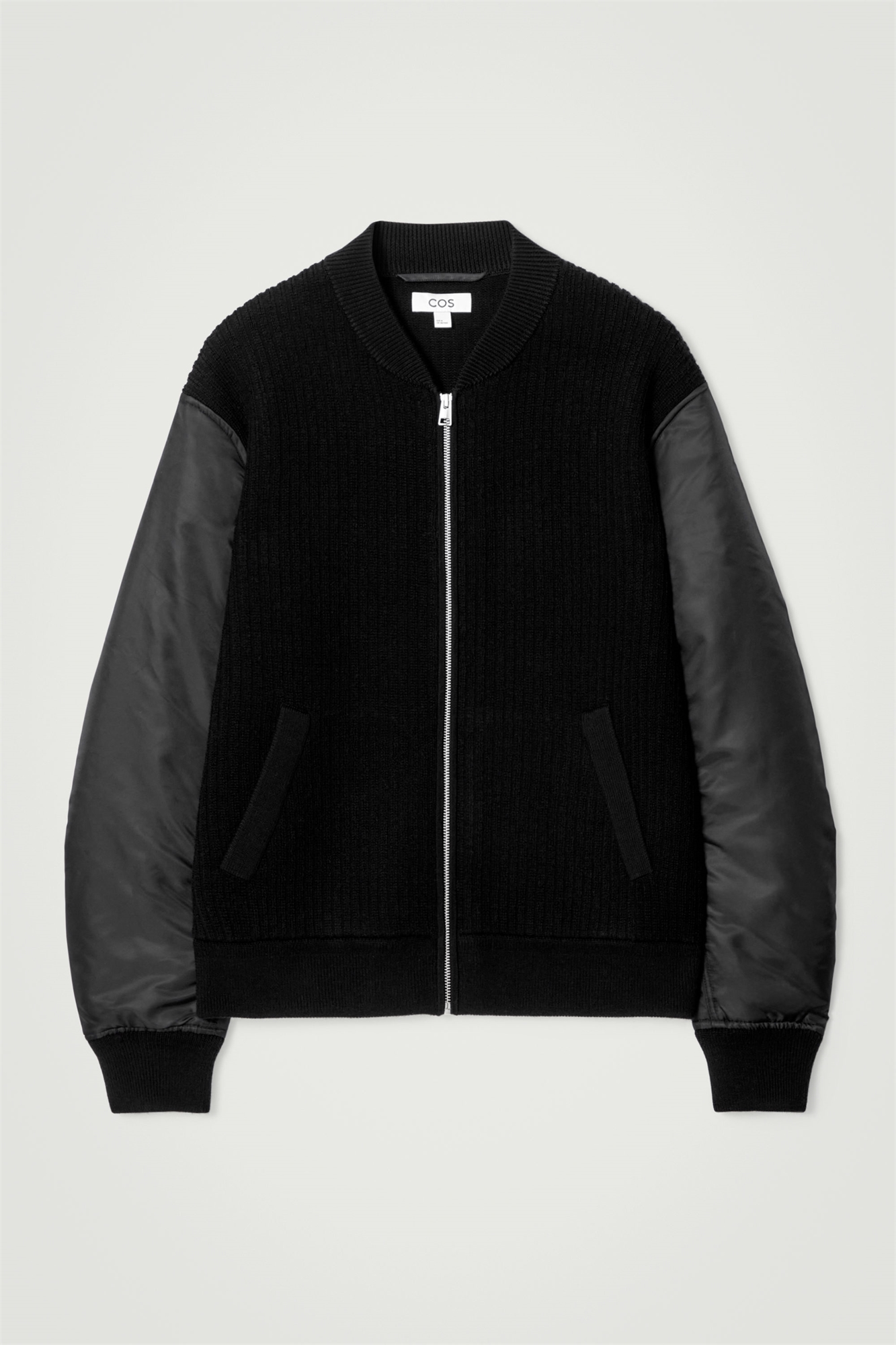 Команда мужской одежды переосмыслила классическую куртку-бомбер. Эта версия имеет трикотажное тело из мериносовой шерсти и контрастные нейлоновые рукава, выполненные в универсальном черном цвете, который легко подобрать. Спереди имеются карманы, а воротник и манжеты отделаны тесемками. Регулярный крой Застежка-молния Этот продукт содержит шерстяное волокно Responsible Wool Standard TE-00047206 (RWS) с ферм, сертифицированных на соответствие требованиям по благополучию животных и управлению земельными ресурсами Оболочка: 78% мериносовой шерсти, 22% полиамида (нейлон). Подкладка: 100% переработанный полиамид (переработанный нейлон). Подкладка: 100% переработанный полиэстер. Без учета отделки / Сухая чистка Длина по спинке для размера M составляет 64,5 см / Модель носит размер M