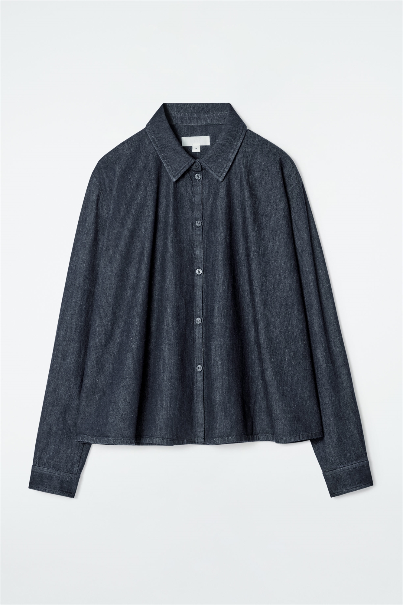 Эта джинсовая рубашка, выполненная в цвете темного индиго, украшена складками сзади, которые подчеркивают ее расклешенный силуэт. Для создания гармоничного образа сочетайте ее с джинсами аналогичного цвета. Регулярная посадка Застежка на пуговицы Материал: 100% хлопок. Без учета отделки / Машинная стирка Длина по спинке для размера EU 36 составляет 56,8 см / Модель носит размер EU 36