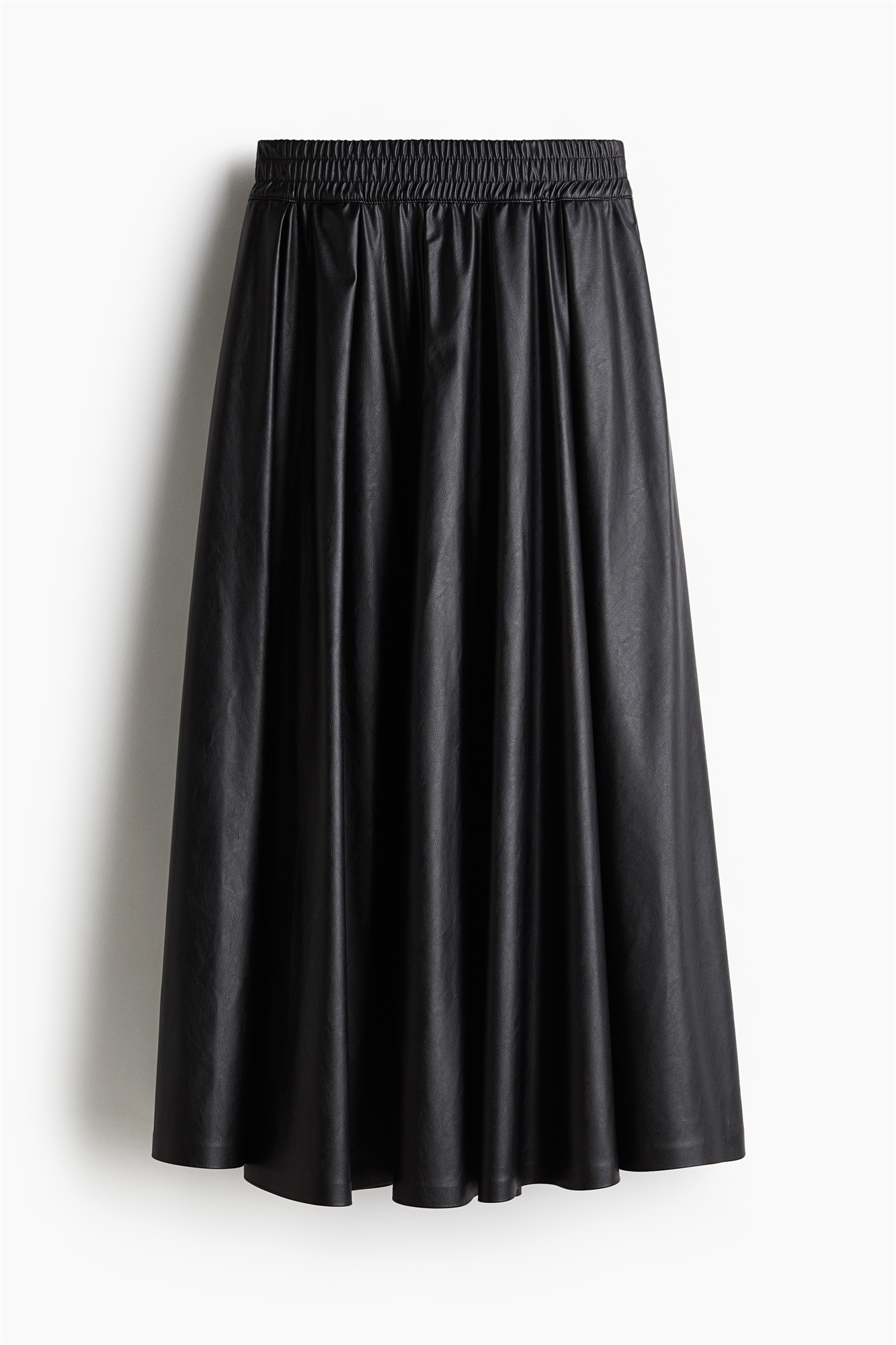 Длинная юбка А-линии из лакированной ткани с эластичной вставкой на талии и неброскими боковыми карманами. Без подкладки.