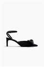 Туфли из мягкого велюра с заостренным носком и большим бантом, узким закрытым каблуком и регулируемым ремешком на щиколотке. Каблук 6,5 см.