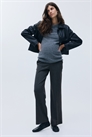 Приталенные брюки из крепового джерси с широким поясом для лучшей посадки на животе. Прямые ноги с застроченными складками спереди.