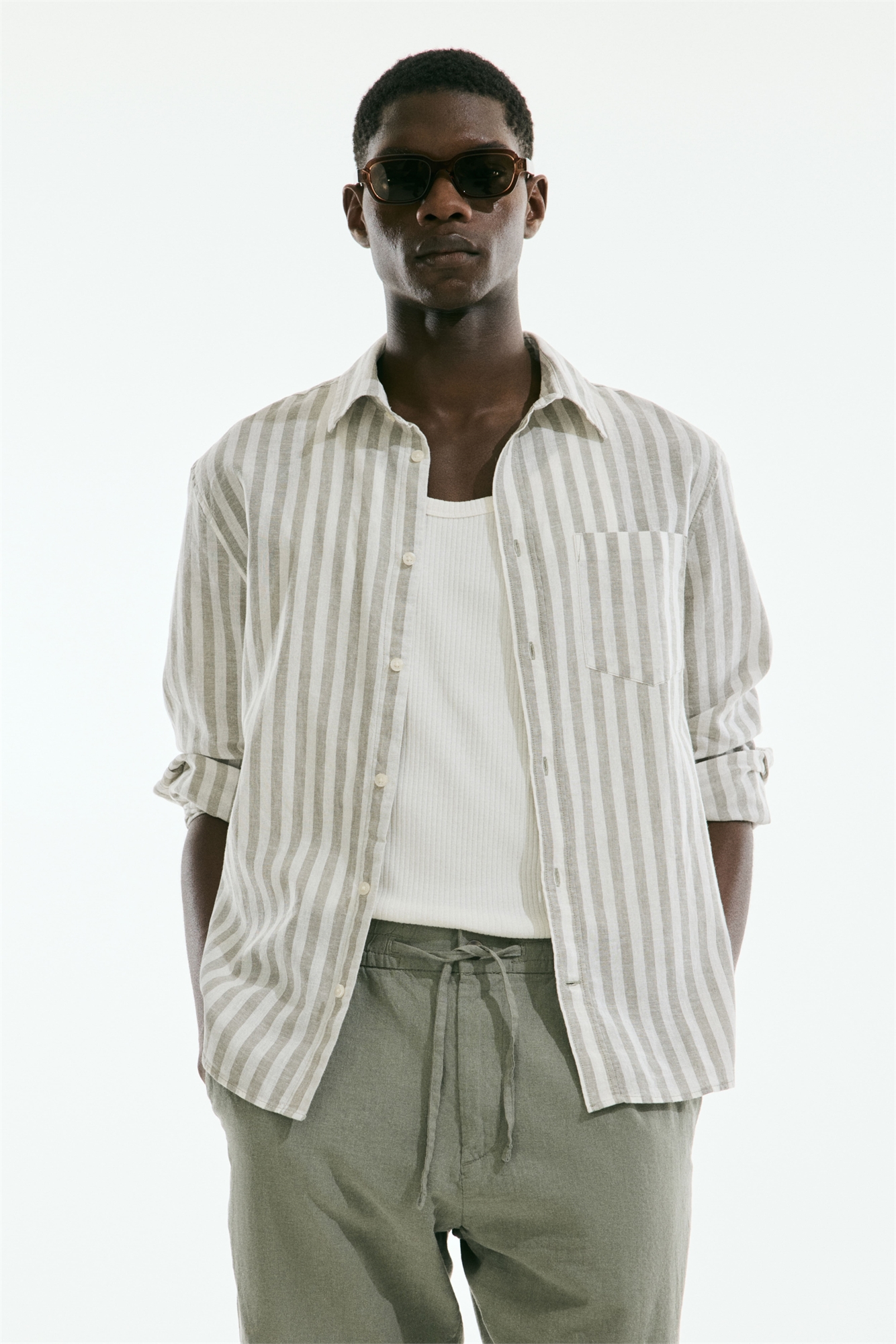 Рубашка из воздушного хлопка и льняного полотна с отложным воротником, классическим передом, передом, передом и открытым нагрудным карманом. Длинные рукава с регулируемыми пуговицами на манжетах и рукавной планкой с пуговицей. Закругленный подол. Регулярный крой для комфортного ношения и классического силуэта. Смесь хлопка и льна сочетает в себе мягкость хлопка и прочность льна, создавая красивую, текстурированную ткань, которая хорошо пропускает воздух и прекрасно драпируется.