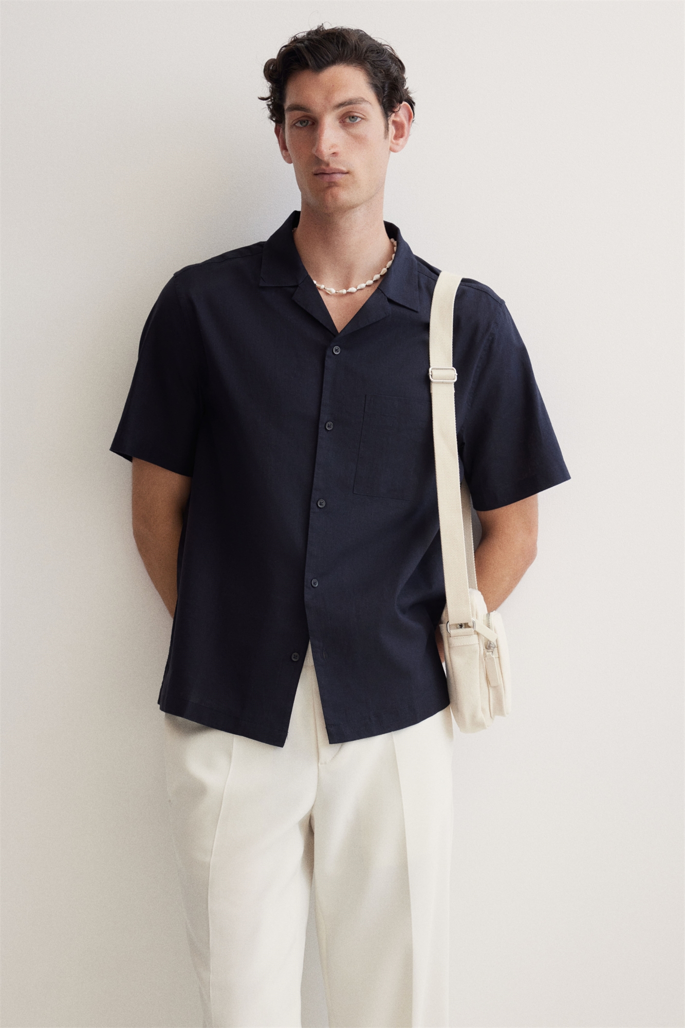 Рубашка с короткими рукавами из воздушной смеси хлопка и льна с отложным воротником, французской застежкой спереди и ярмом сзади. Открытый нагрудный карман и прямой подол с разрезом с каждой стороны. Регулярный крой для комфортного ношения и классического силуэта. Смесь хлопка и льна сочетает в себе мягкость хлопка и прочность льна, создавая красивую, текстурированную ткань, которая хорошо пропускает воздух и прекрасно драпируется.