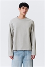 Свободная футболка с длинными рукавами сшита из мягкой хлопковой ткани. Круглый вырез, свободный крой и прямые края.