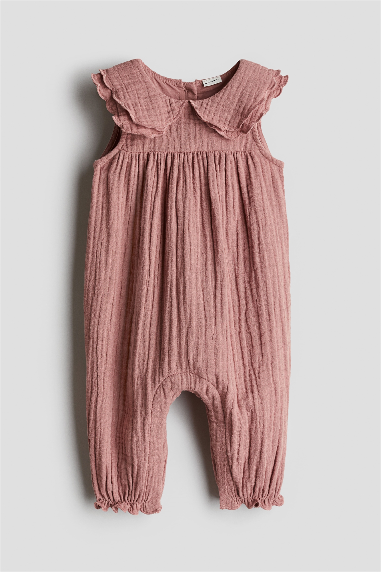 H&M Adorables. Ромпер без рукавов из мягкого муслина, изготовленного из высококачественного хлопка. Закругленный двухслойный воротник с оверлочными краями, сборки в верхней части и отверстие сзади с кнопками corozo. Потайные застежки на кнопки по ногам, узкая эластичная резинка и небольшая оборка по подолу. Коллекция H&M Adorables - это подборка удобных и качественных вещей, не теряющих актуальности.