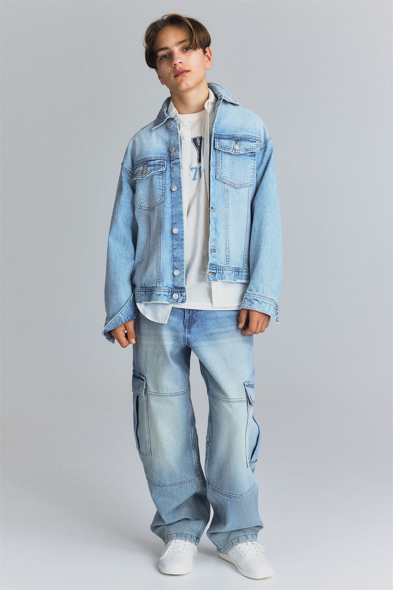 Мешковатые джинсы-карго из моющегося хлопкового денима со свободным кроем в области бедер и ляжек и опущенной промежностью. Регулируемая резинка на талии и ширинка на молнии с пуговицей. Передние и задние карманы, а также накладные карманы на ногах со скрытой застежкой на кнопки.