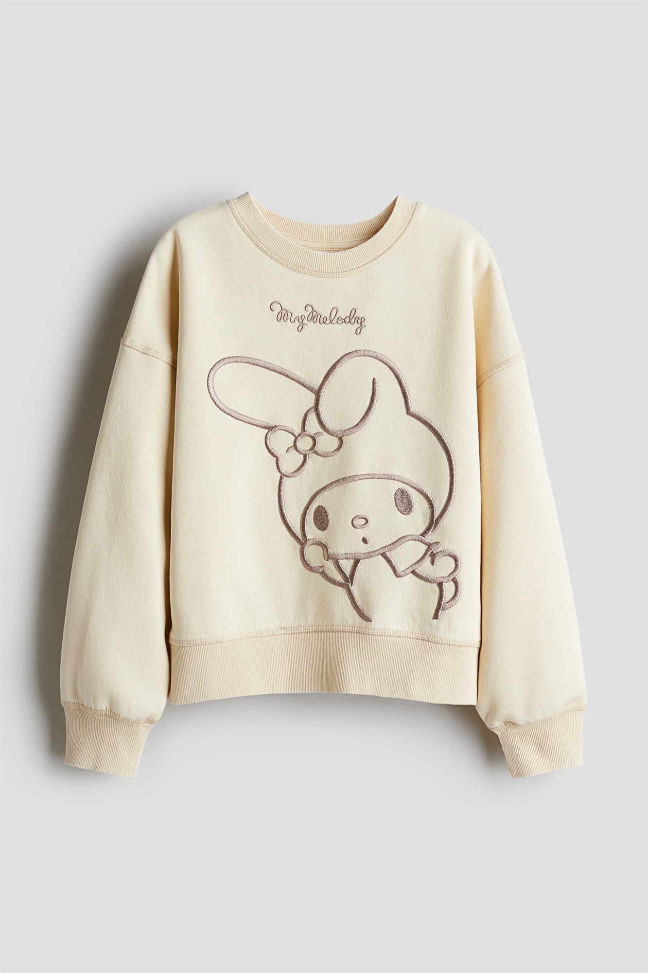 H&M x Hello Kitty and Friends. Веселая и яркая коллекция с уютными фасонами, милыми принтами и игривыми аксессуарами. Откройте для себя мир Hello Kitty и всех наших пушистых любимцев! Топ из толстовки с мягкой ворсистой внутренней стороной и вышитым мотивом спереди. Круглый вырез с ребристой отделкой, спущенные плечи и длинные рукава. Ребристые манжеты и подол.