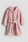 Халат из мягкой пушистой ткани с капюшоном с принтами в виде ушек, длинными рукавами и поясом-завязкой на талии.
