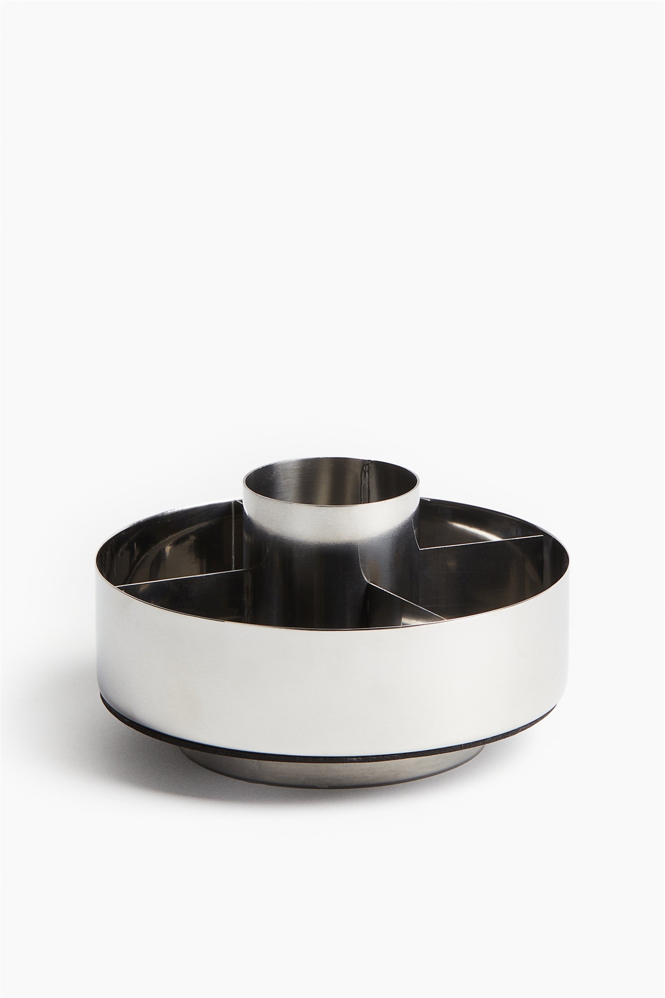 Круглая металлическая коробка для хранения с пятью отделениями идеально подходит для косметики, канцелярских принадлежностей и любых других необходимых мелочей. Вращающаяся конструкция обеспечивает легкий доступ ко всем необходимым вещам, а дно с силиконовой прокладкой предотвращает появление царапин на поверхности под ним. Высота 7 см. Диаметр 16 см.