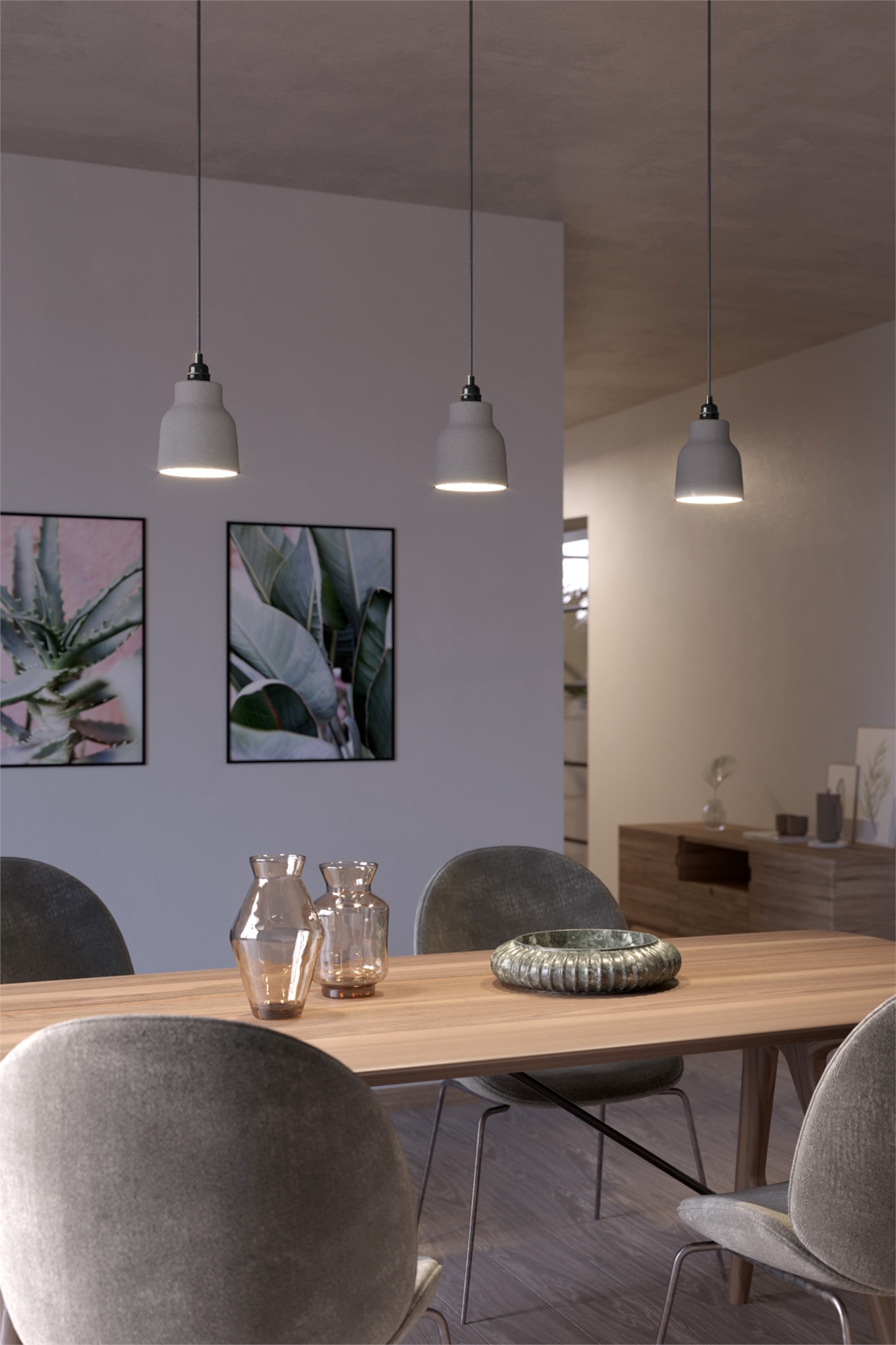 Потолочный светильник с керамическим абажуром и металлической отделкой. Кабель в тканевой оболочке. Цоколь для лампочек E27. Включая лампу накаливания 7W 640 Lm. Диаметр розетки 12 см. Ширина абажура 13 см. Длина кабеля 120 см. Общая высота около 146 см.
