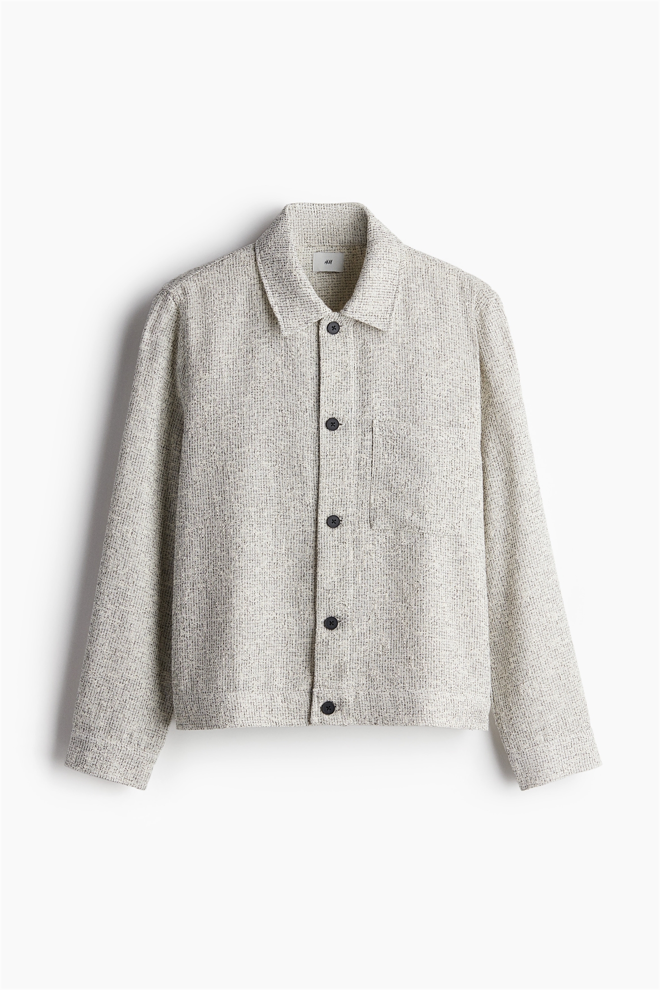 Пиджак из фактурного переплетения с блестящими нитями. Воротник, пуговицы спереди, открытый нагрудный карман и ярмо сзади. Длинные рукава с манжетами на пуговицах. Без подкладки. Регулярный крой для комфортной носки и классического силуэта.