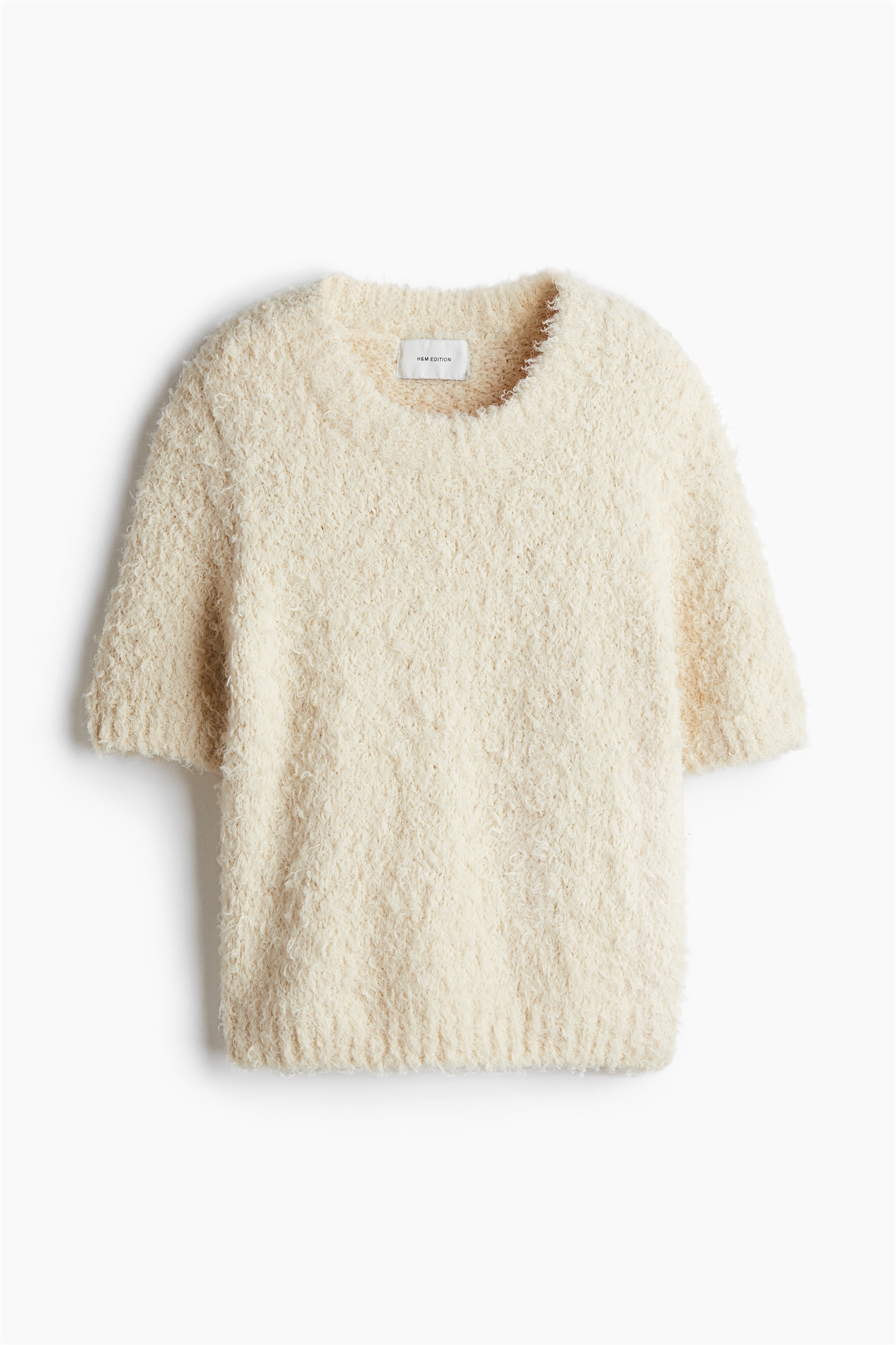 Топ с короткими рукавами из мягкого пушистого трикотажа с круглым вырезом, манжетами и подолом в рубчик.