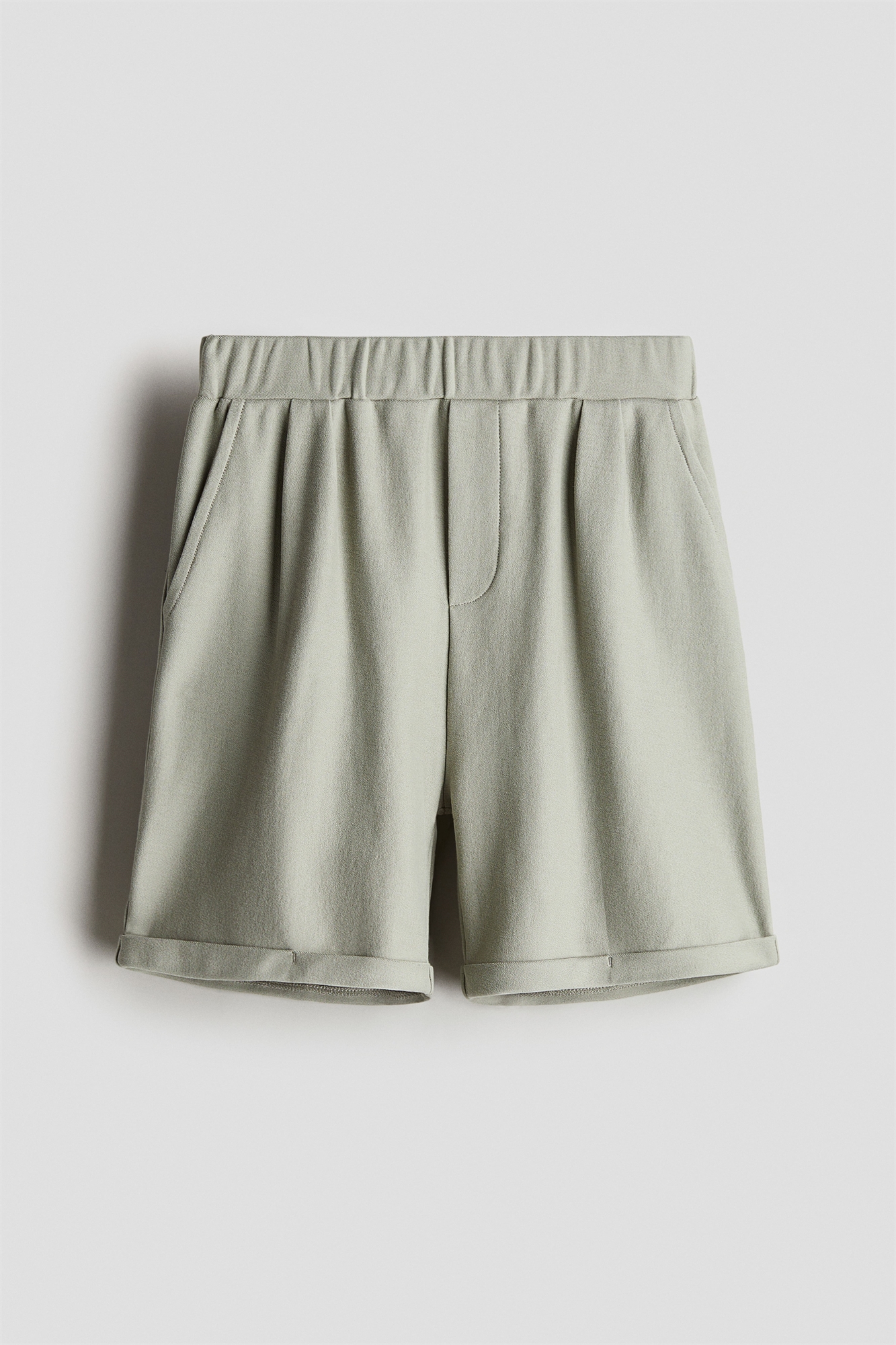 H&M Adorables. Шорты из мягкого джерси из высококачественного хлопка со складками спереди. Свободный крой с регулируемой эластичной талией, фальшивая ширинка, диагональные передние карманы и вшитые подвороты по краям. Наш хлопковый трикотаж имеет высокий показатель GSM, что означает более плотное и прочное качество без ущерба для комфорта. Коллекция H&M Adorables - это подборка качественных вещей с высоким уровнем комфорта, которые не подвластны времени.