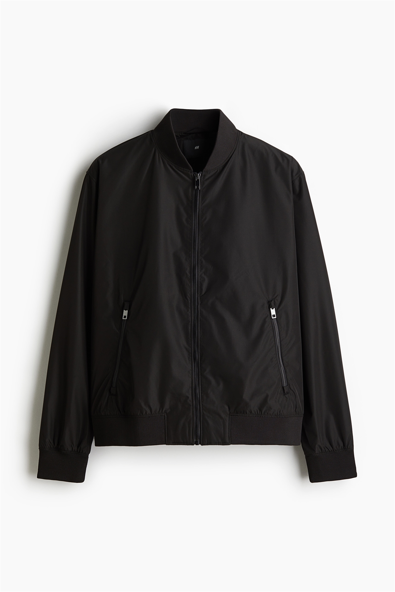 Легкая куртка-бомбер из тканого материала с ребристым воротником-стойкой и застежкой-молнией спереди. Боковые карманы на молнии и внутренний карман на молнии. Широкий рубчик на манжетах и подоле. Регулярный крой для комфортной носки и классического силуэта. На подкладке.