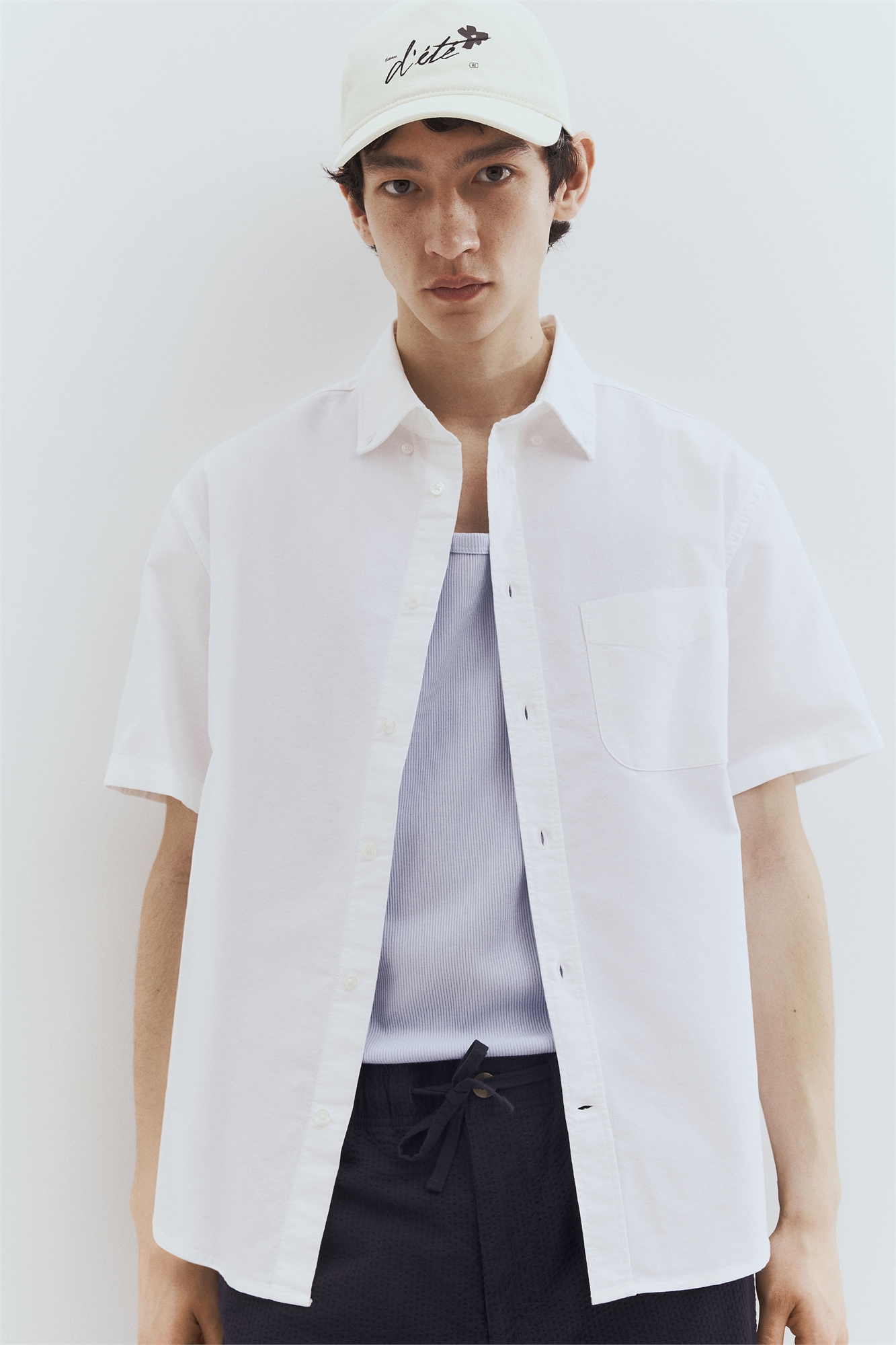 Рубашка из оксфордского хлопка с отложным воротником на пуговицах, классическим передом, передом, короткими рукавами и открытым нагрудным карманом. Закругленный подол. Регулярный крой для комфортной носки и классического силуэта.