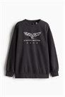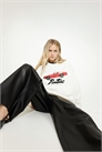 Топ оверсайз из принтованной толстовки с круглым вырезом, отделанным ребрами, спущенными плечами и длинными рукавами. Манжеты и подол отделаны ребрами жесткости.
