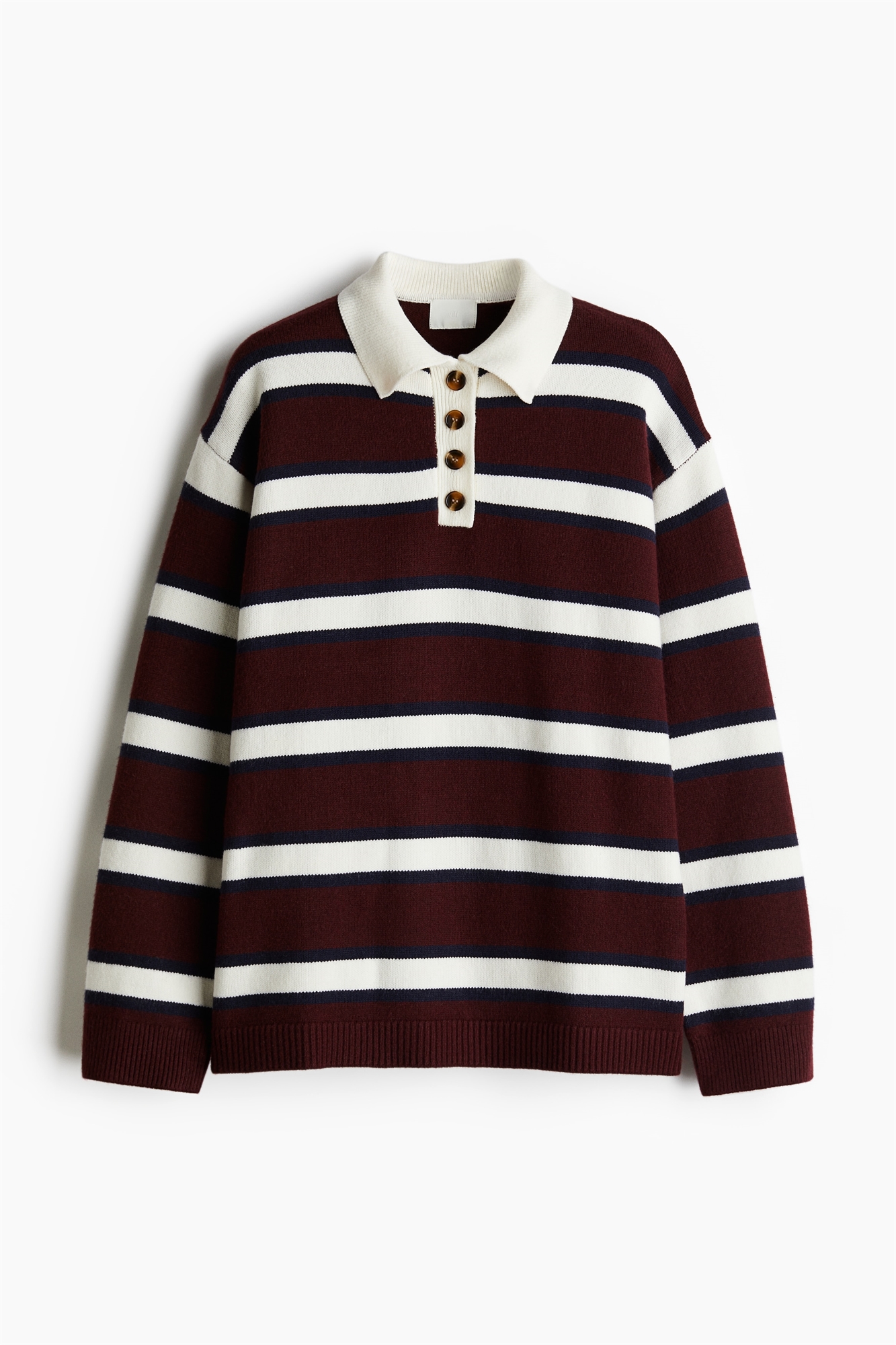 Рубашка-поло свободного покроя из мягкого тонкого трикотажа с воротником и застежкой на пуговицы. Спущенные плечи, длинные рукава и окантовка манжет и подола.