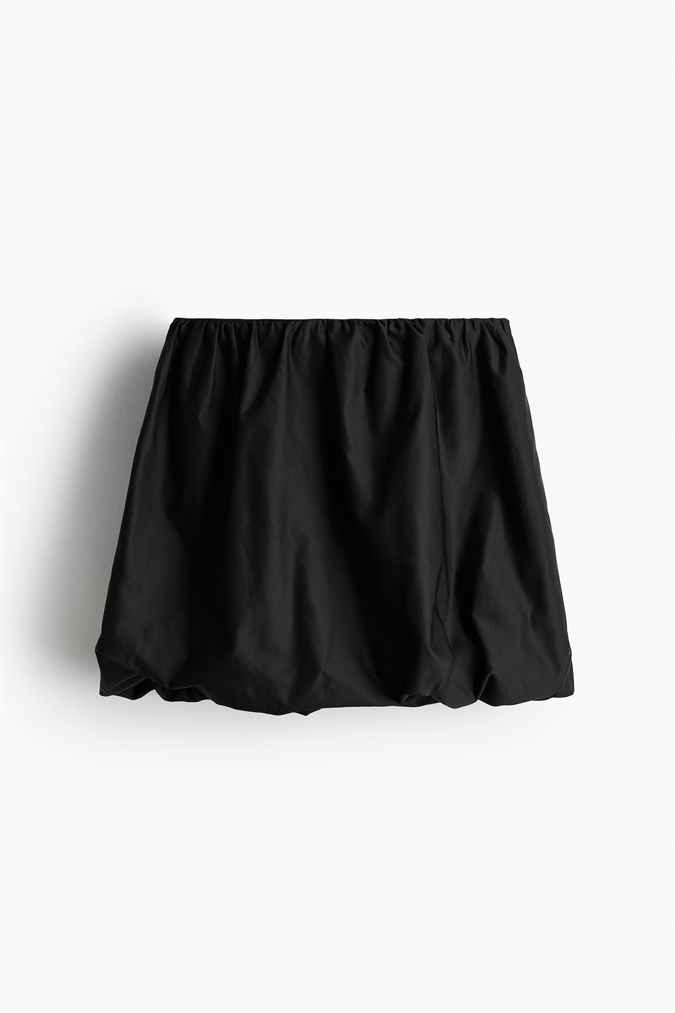 Мини-юбка а-силуэта из тканого материала с заниженной талией и потайной застежкой на молнию и крючок с глазом с одной стороны. Подол в виде пузыря придает силуэту пышность. На подкладке.