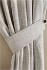 Пара широких подхватов для штор из прочного плетения с небольшими петлями для крепления к стене. Длина 60 см. Ширина 11 см.