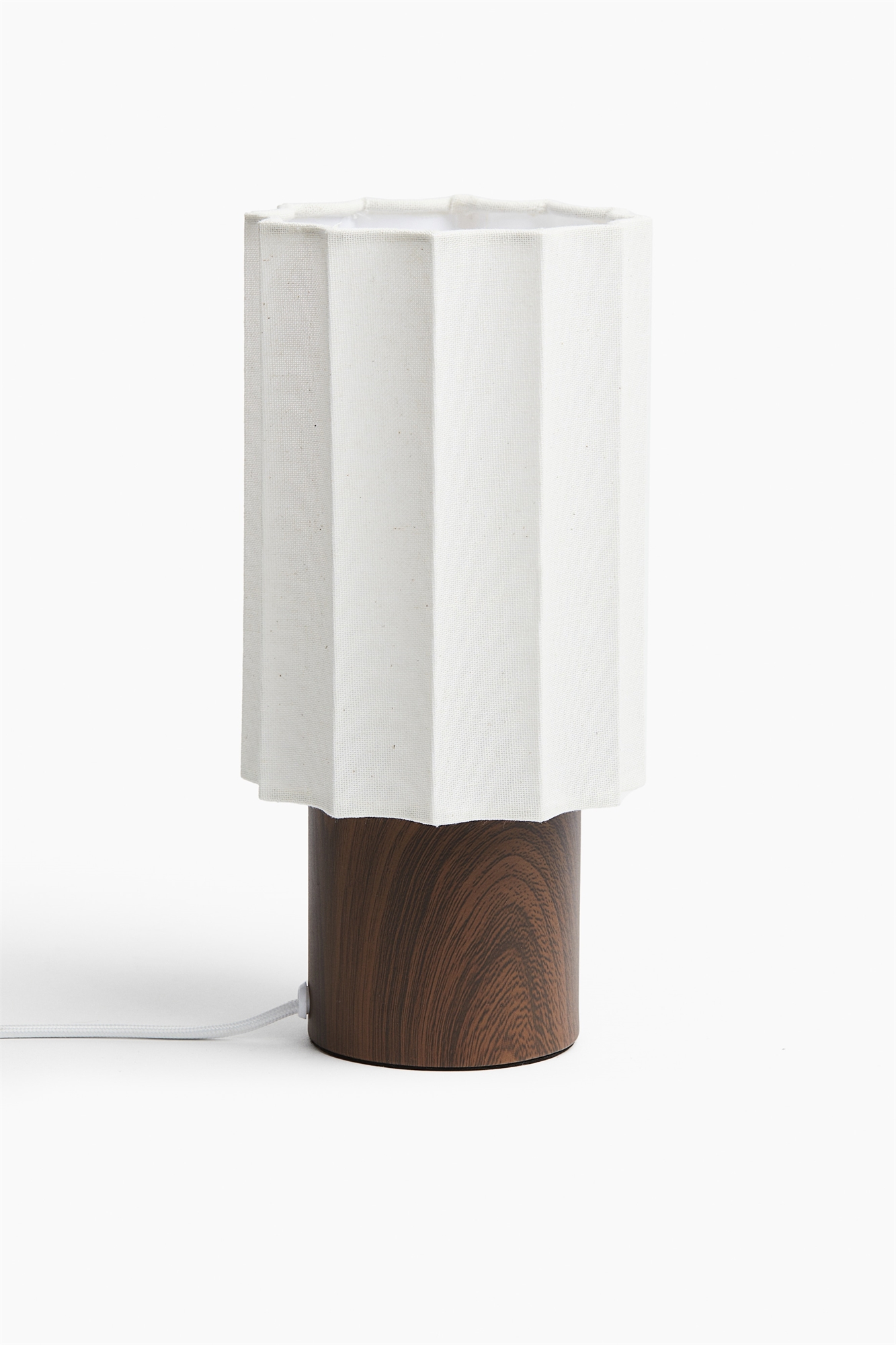 Минималистичная настольная лампа с широким цилиндрическим металлическим основанием и ребристым абажуром из ткани микс льна. Тонкая ткань абажура придает лампе мягкий свет. Кабель с пластиковым выключателем. Для ламп с цоколем E14. Максимальная мощность 6 Вт. Лампочка в комплект не входит. Диаметр дна 9 см. Диаметр абажура 13,2 см. Общая высота 26,9 см. Длина кабеля 1,6 м.