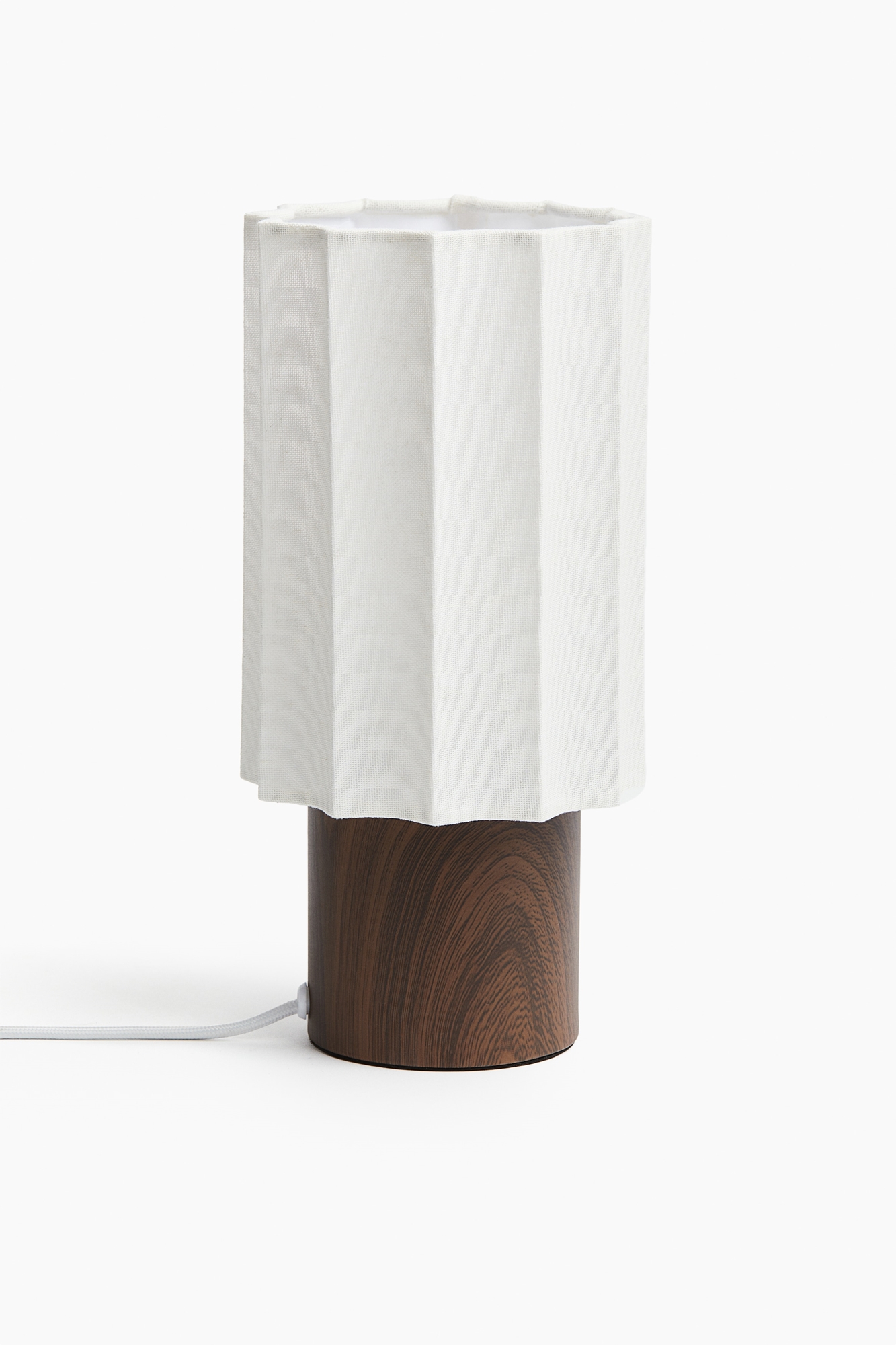 Минималистичная настольная лампа с широким цилиндрическим основанием из металла и высоким рифленым абажуром из плетеной ткани из смеси льна. Лампа излучает мягкий свет через тонкую ткань абажура. Шнур с пластиковым выключателем. Патрон E14. Максимальная мощность 6 Вт. Лампочка в комплект не входит. Диаметр основания 9 см. Диаметр абажура 13,2 см. Общая высота 26,9 см. Длина шнура 1,6 м.