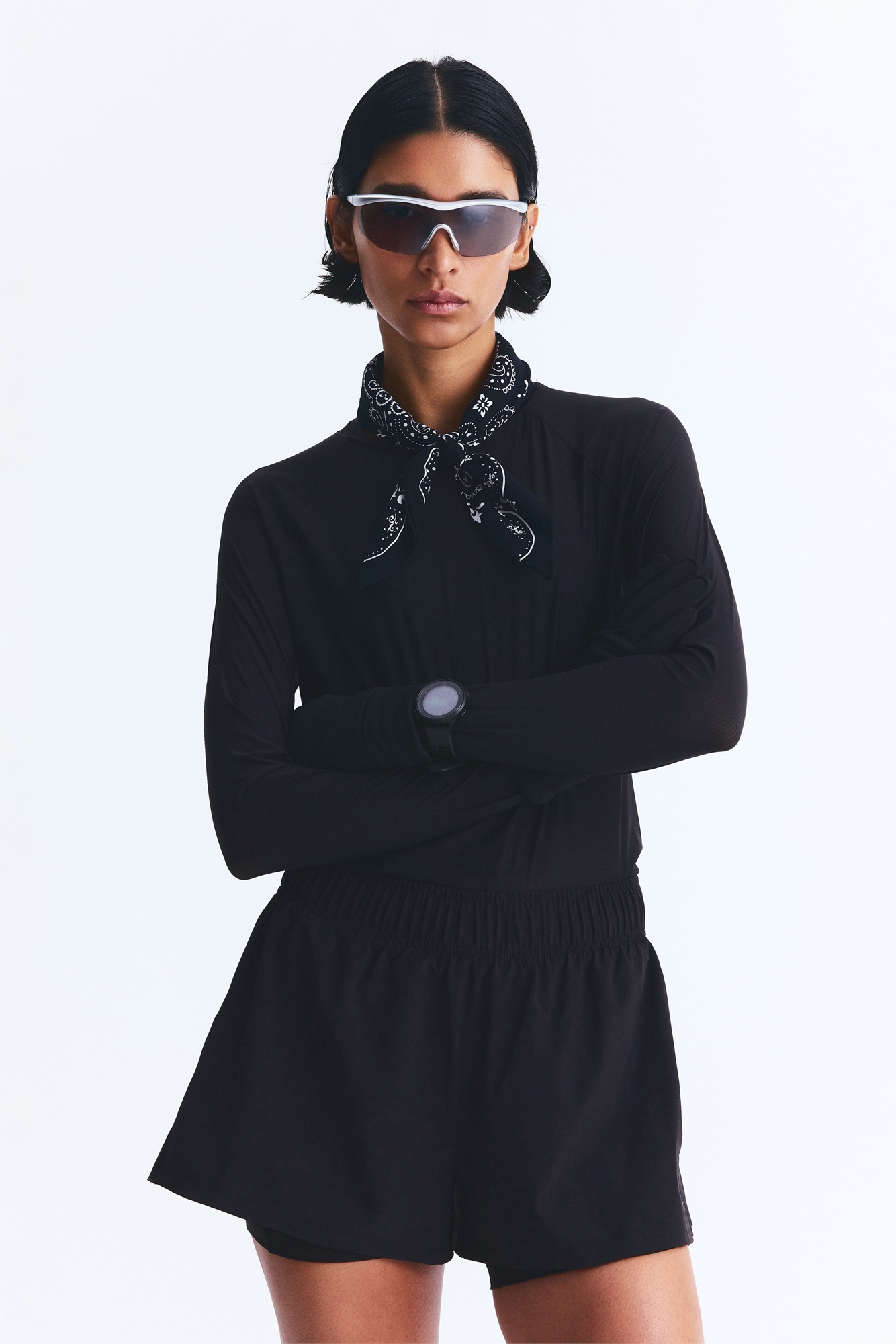 Шорты для бега из функциональной ткани DryMove™, которая отводит влагу от кожи, обеспечивая комфортную сухость во время движения. Шорты надеваются поверх велошорт из джерси с открытым карманом на одной штанине и четырехсторонним стрейчем для дополнительного комфорта и свободы движений. Регулярная талия с эластичной отделкой и скрытым шнурком. Небольшой разрез с одной стороны по подолу.